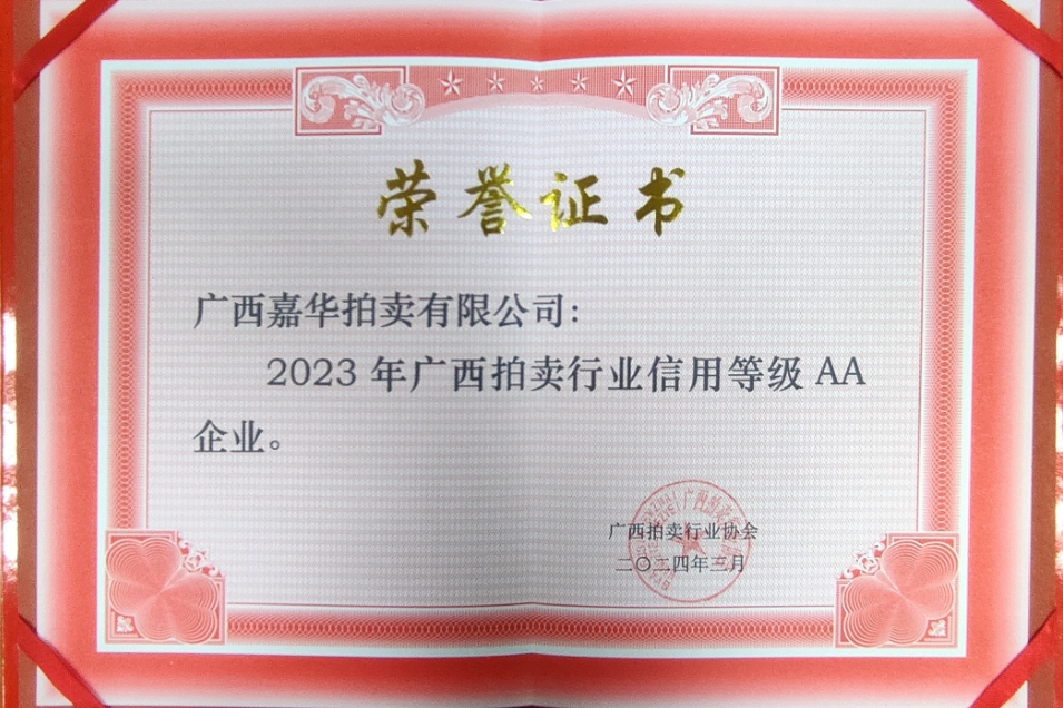 • 廣西拍賣行業信用等級AA企業